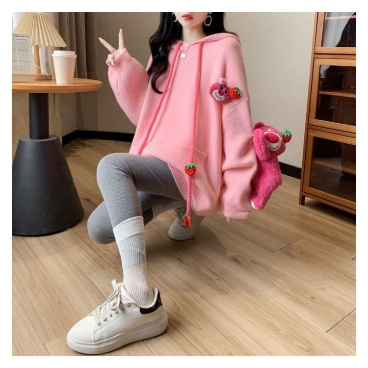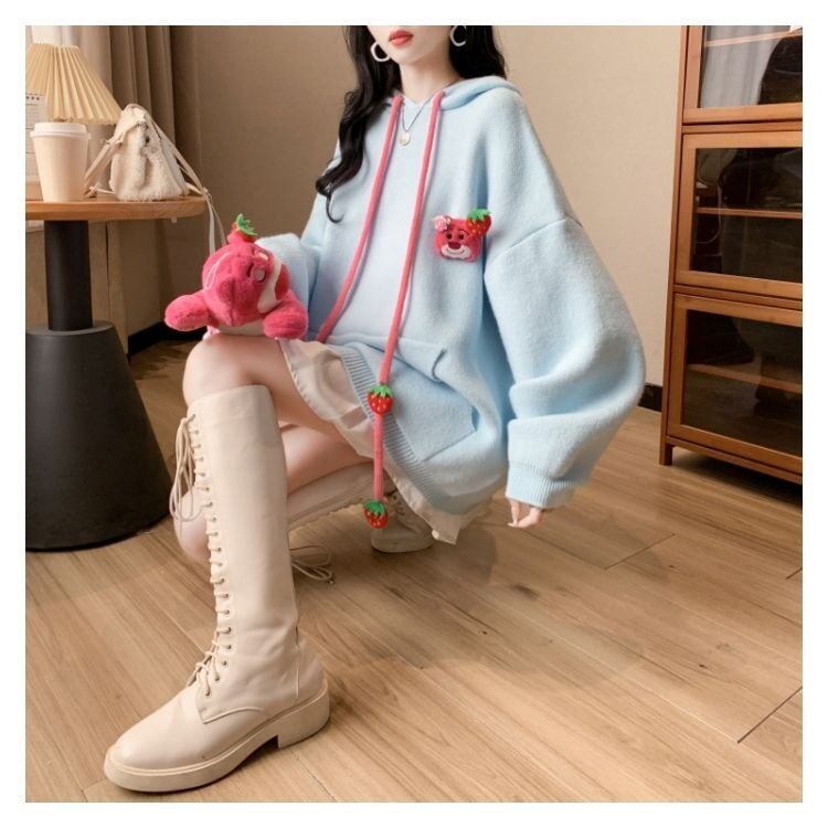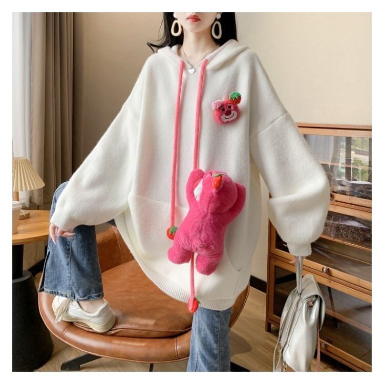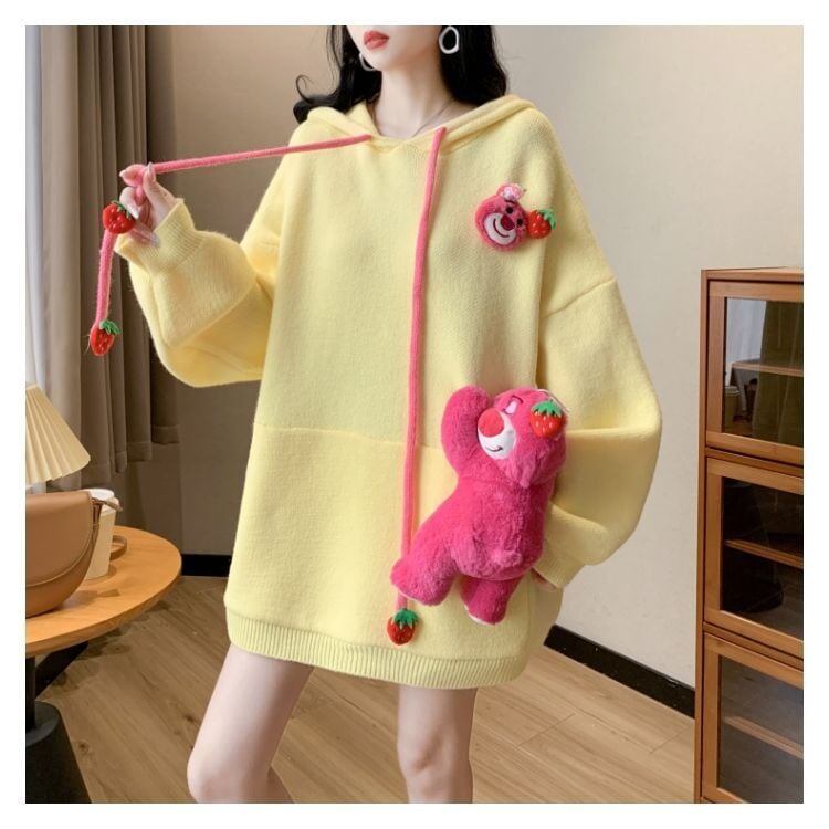 カワイイクマちゃんぬいぐるみ付きニットフード付きパーカ全4色GF3462