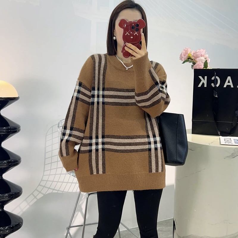 新作 着痩せ厚手ゆったりニットセーター カーキ色トップスGF3522