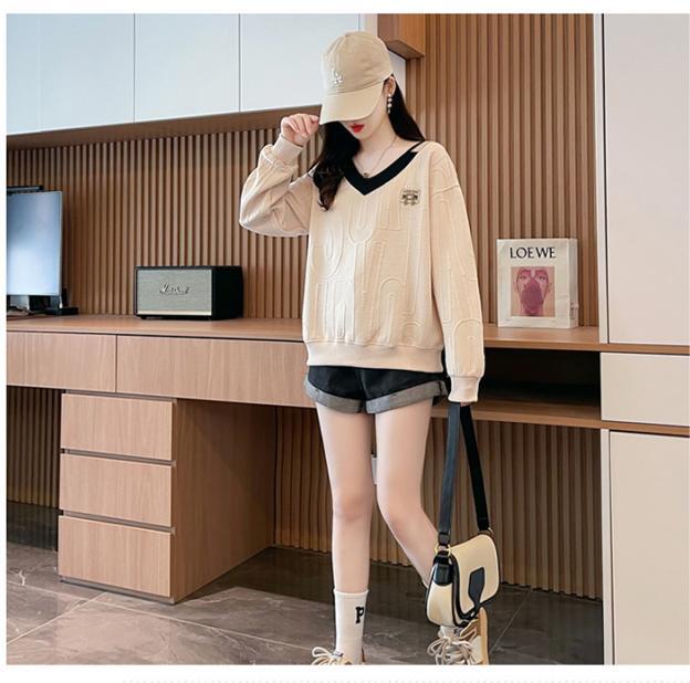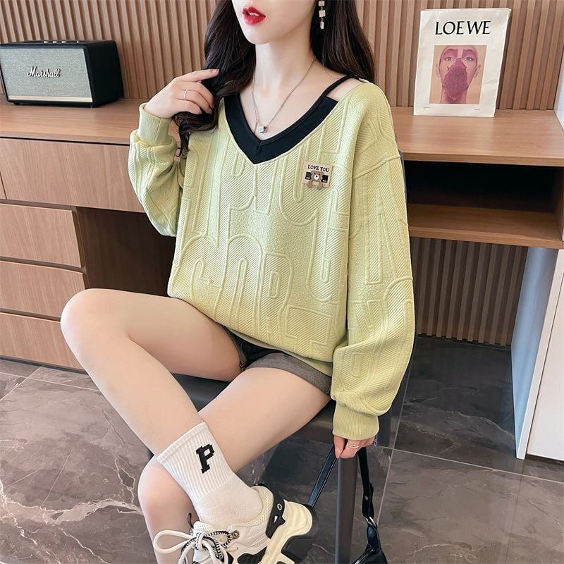 女子マスト レイヤード風 熊柄ロゴゆったり厚手スウェット全3色トップスGF3579