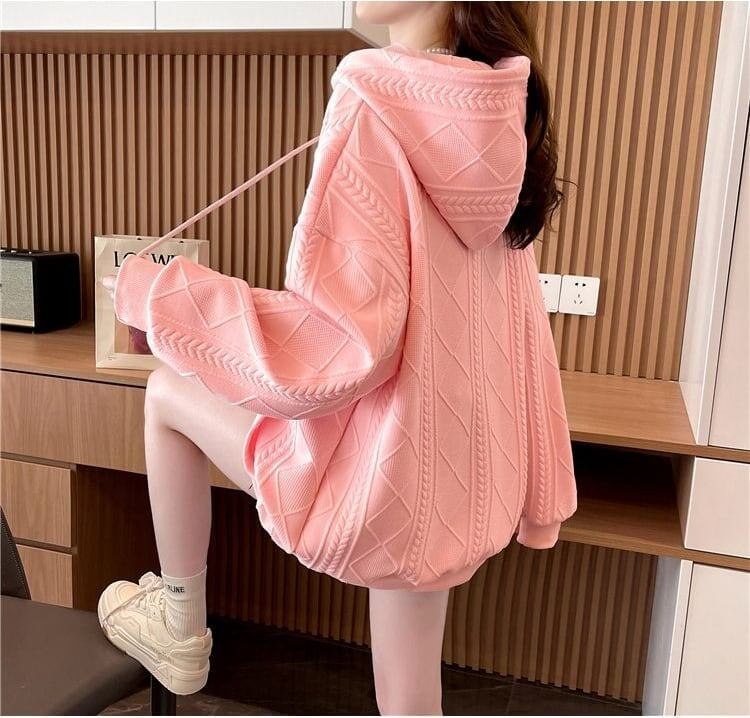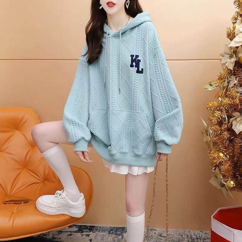 「裏起毛あり」好感度100% ワッフル 英字ロゴフード付きパーカ全4色ゆったりトップスGF3637