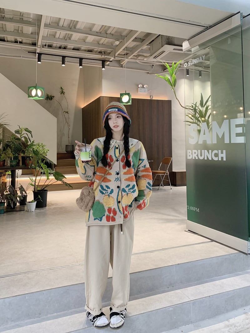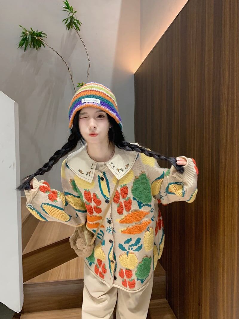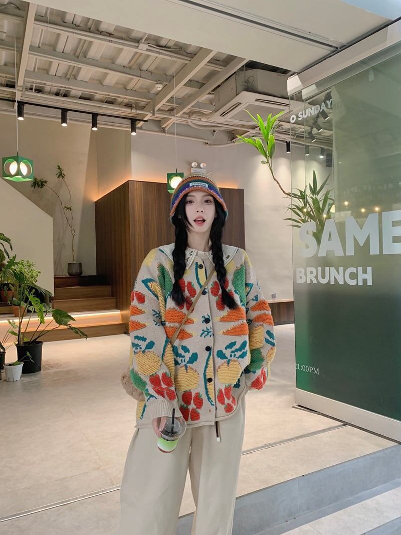 大人可愛いジャカードゆったりカーディガン全2色ニットトップスGF3737
