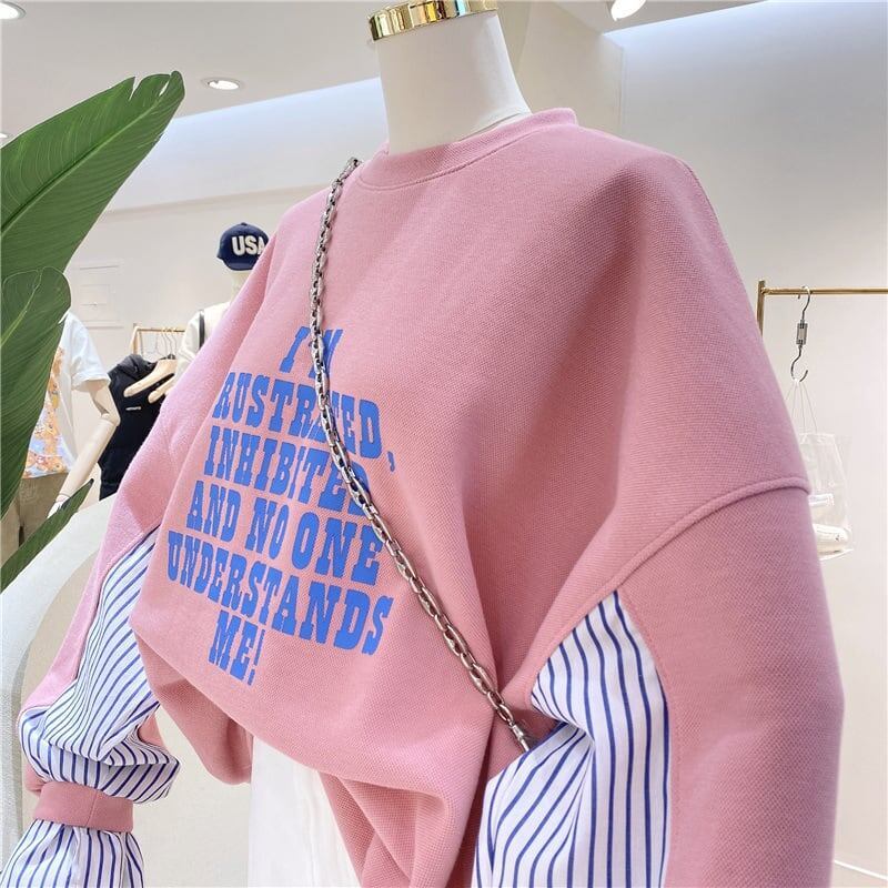 好感度UPストライプ柄 英字ロゴゆったりスウェット全4色トップスGF3786
