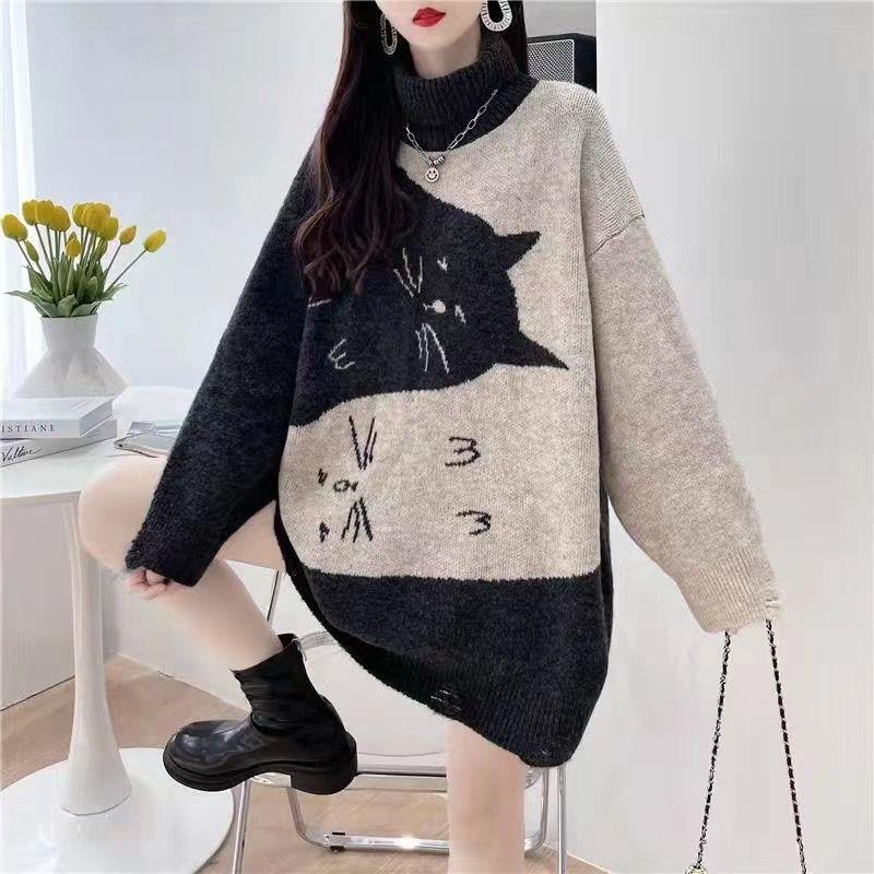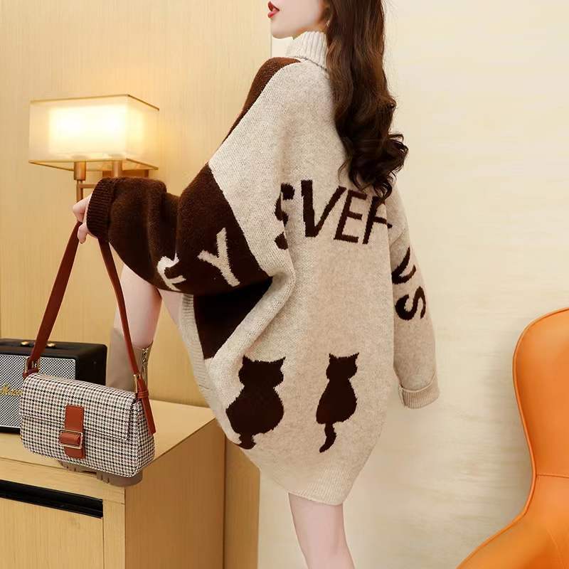 「裏起毛」優しい雰囲気 ハイネック厚手ゆったりニットセーター全2色 GF3800