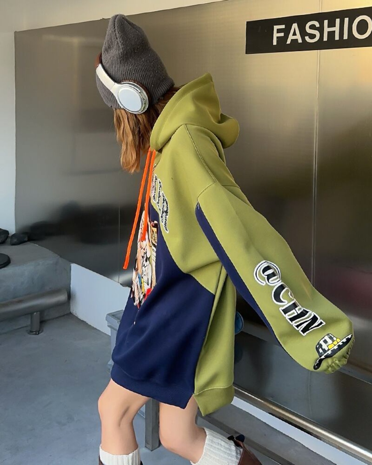 最新作プリントロゴ切り替えフード付きパーカ全3色オーバーサイズトップスGF3847
