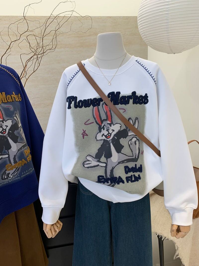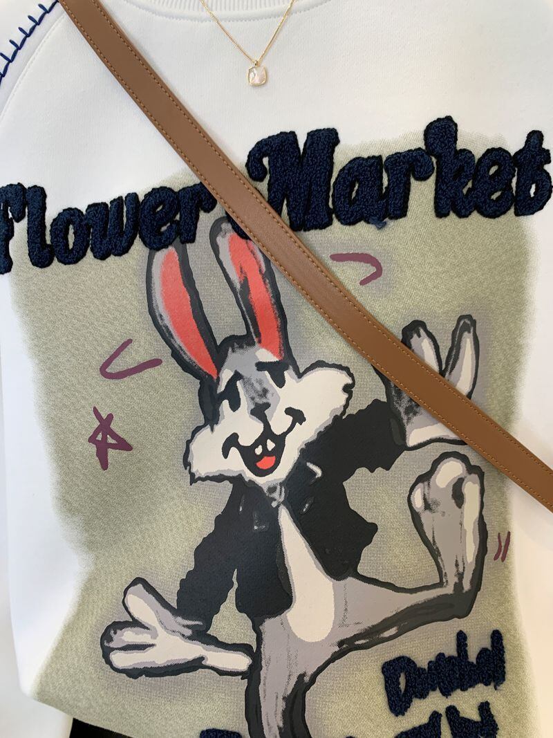 可愛いウサギちゃんフリントロゴ ゆったりスウェット 全5色トップスGF3866