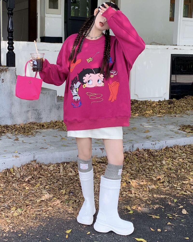 話題沸騰中 ロゴプリント裏起毛オーバーサイズスウェット全4色GF3135