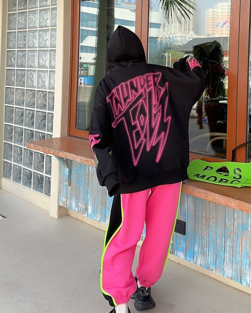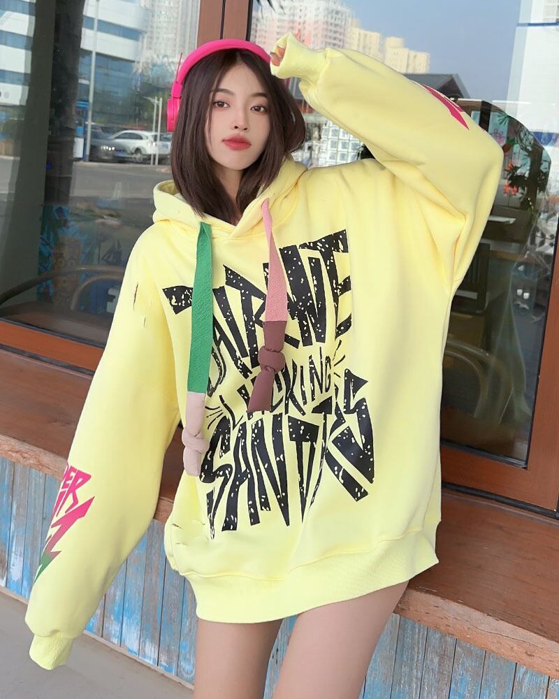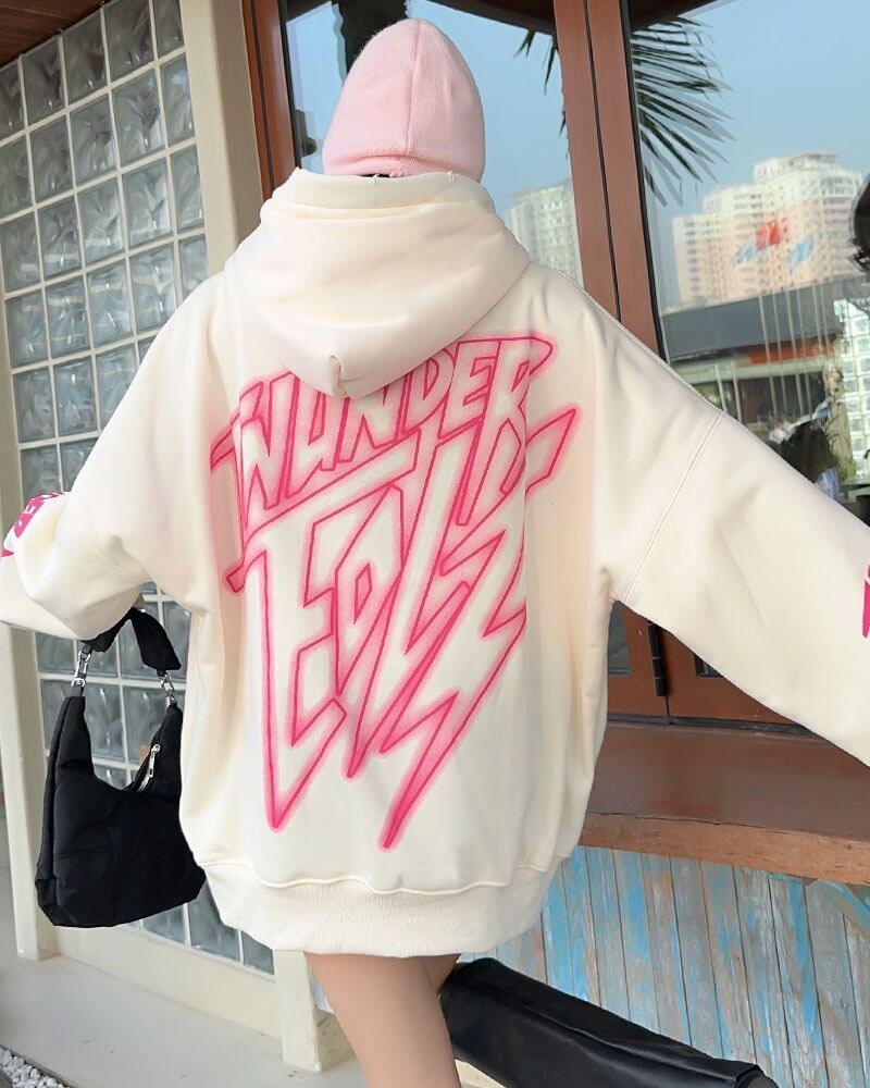 主役級 アルファベットロゴオーバーサイズ裏起毛フード付きパーカー全4色GF3139