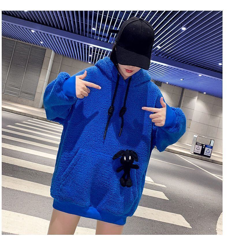 定番シンプルぬいぐるみゆったりブルーフード付きボアパーカーGF3231