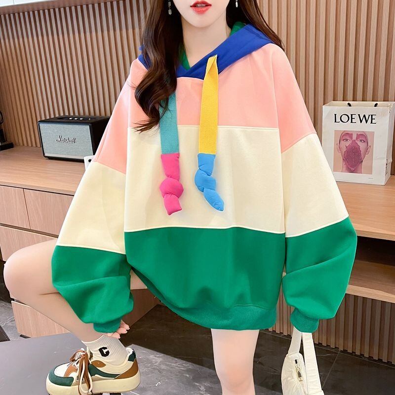 大人可愛いカラーマッチングフード付き パーカー全二色トップスGF3256