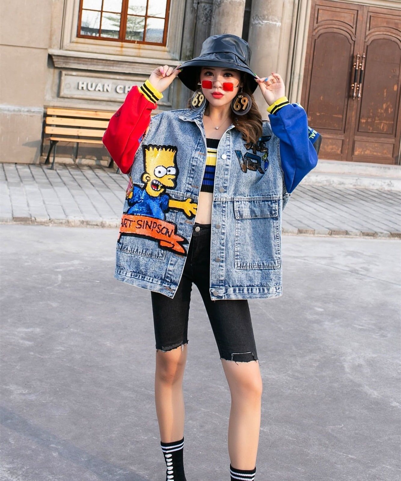 見逃し禁止 切り替え スパンコール カラーマッチング デニムジャケットGF3257