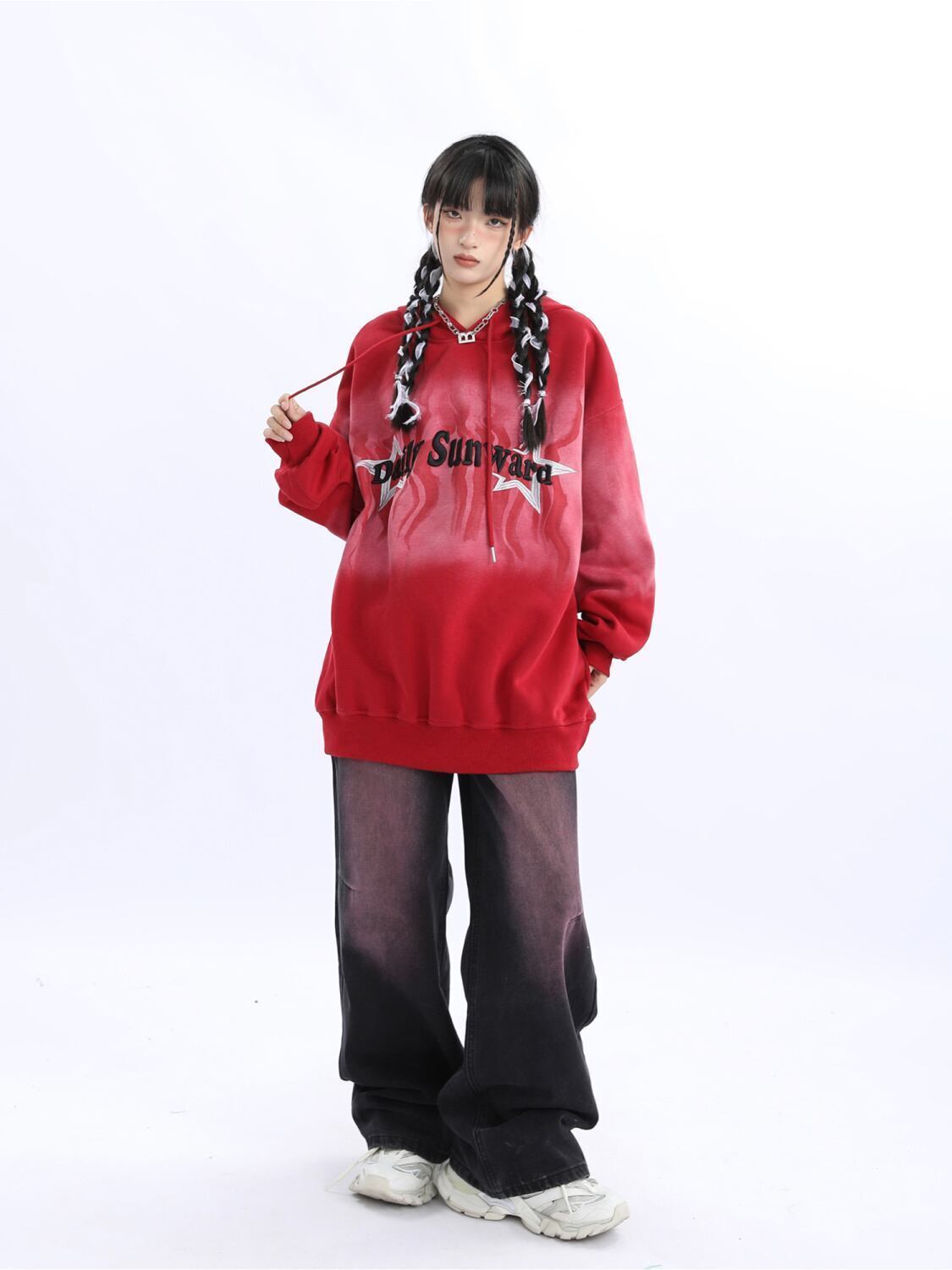 見逃し禁止グラデーションフード付きパーカー裏起毛全2色トップスGF3262