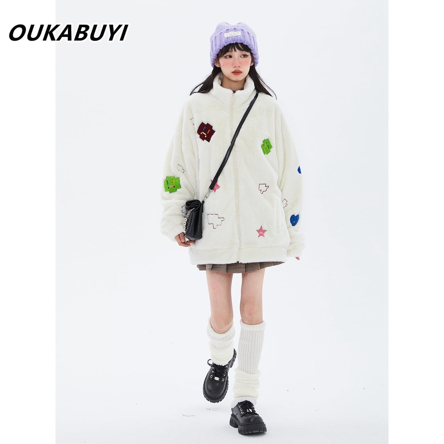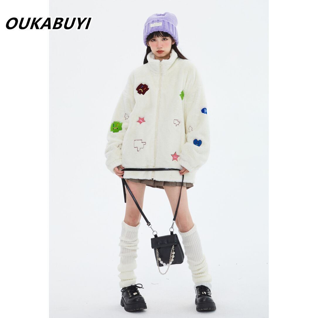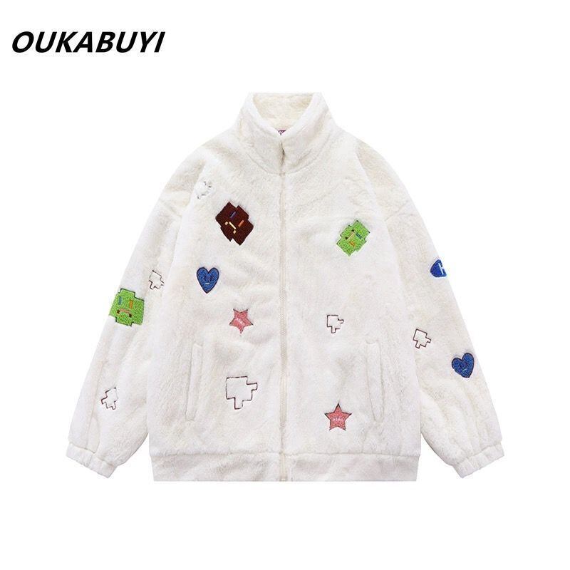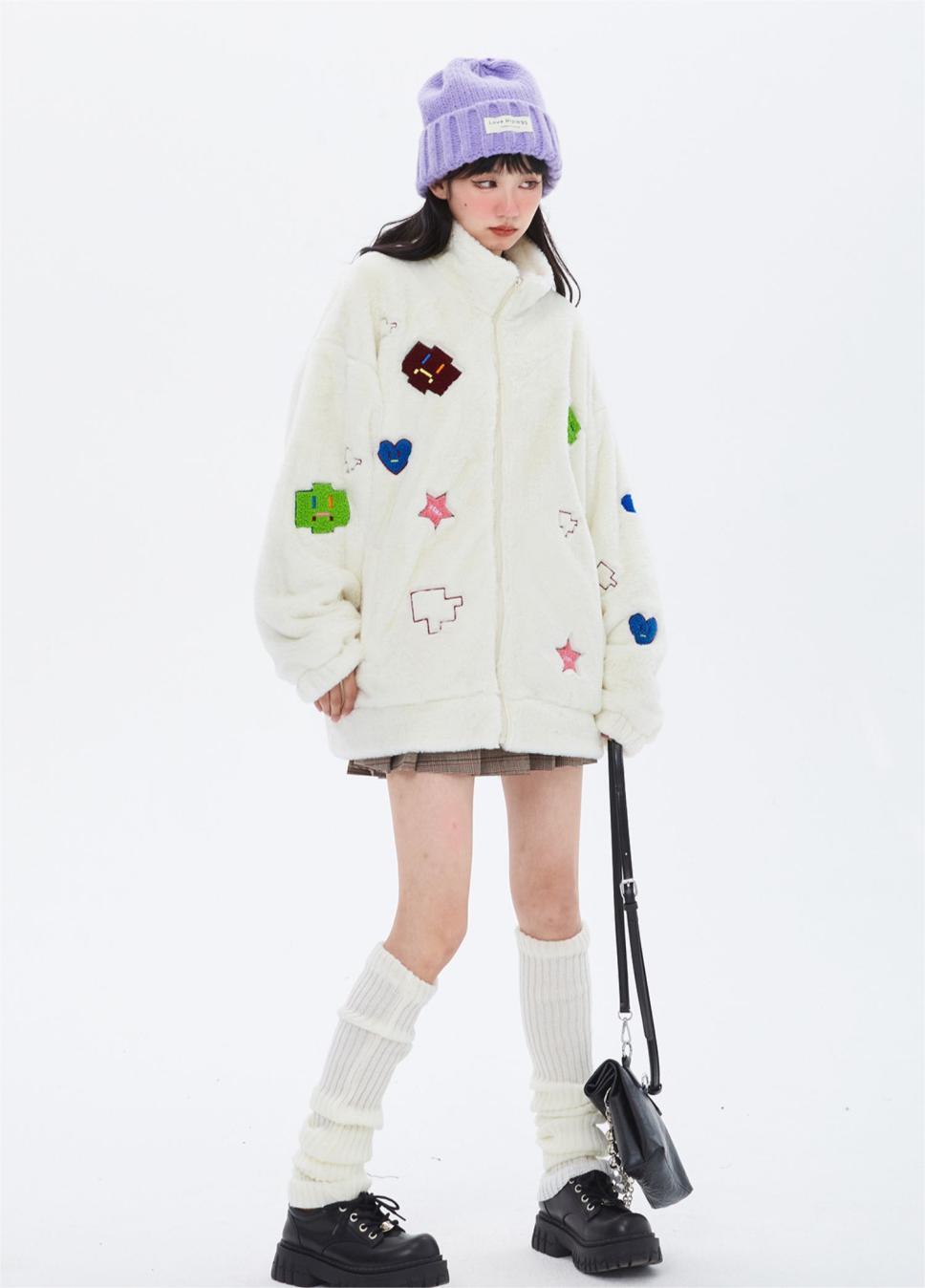 質感のいい刺ロゴ ユニセックス もこもこボア厚手ジャケット全2色GF3276