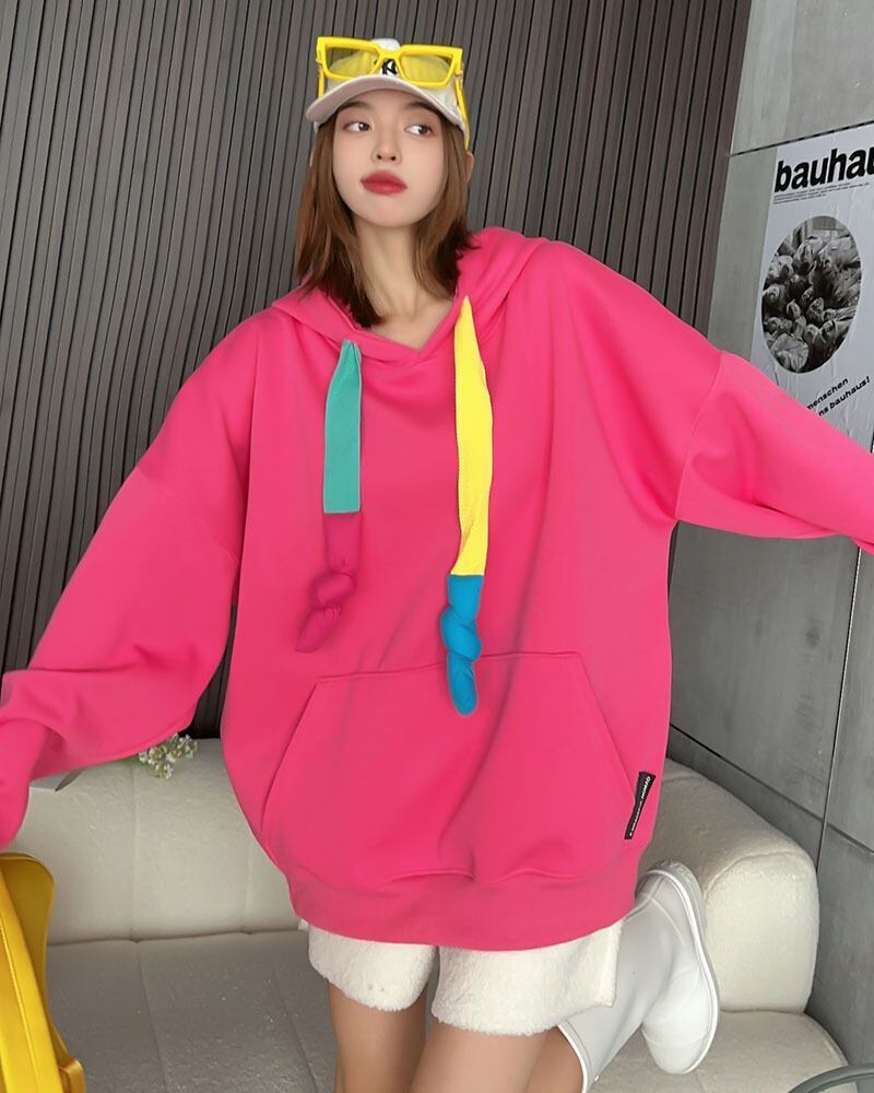 定番シンプルオーバーサイズフード付きパーカー全5色厚手トップス GF3300