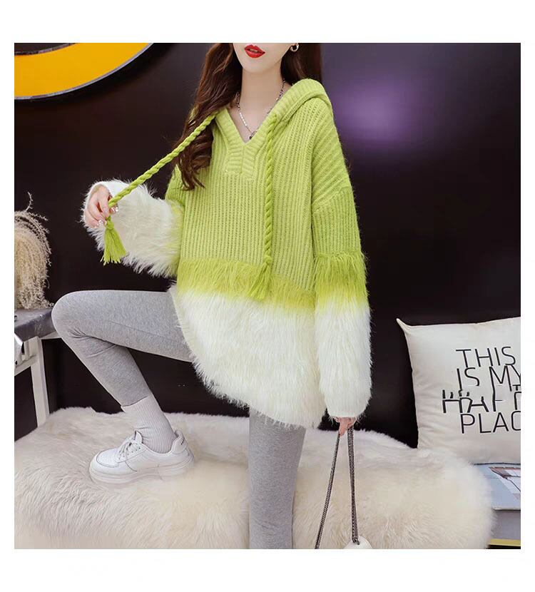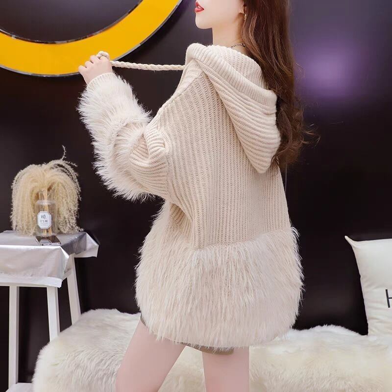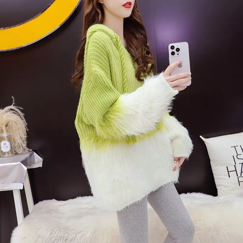 優しい雰囲気切り替えフード付きニットパーカー二色トップスGF3313