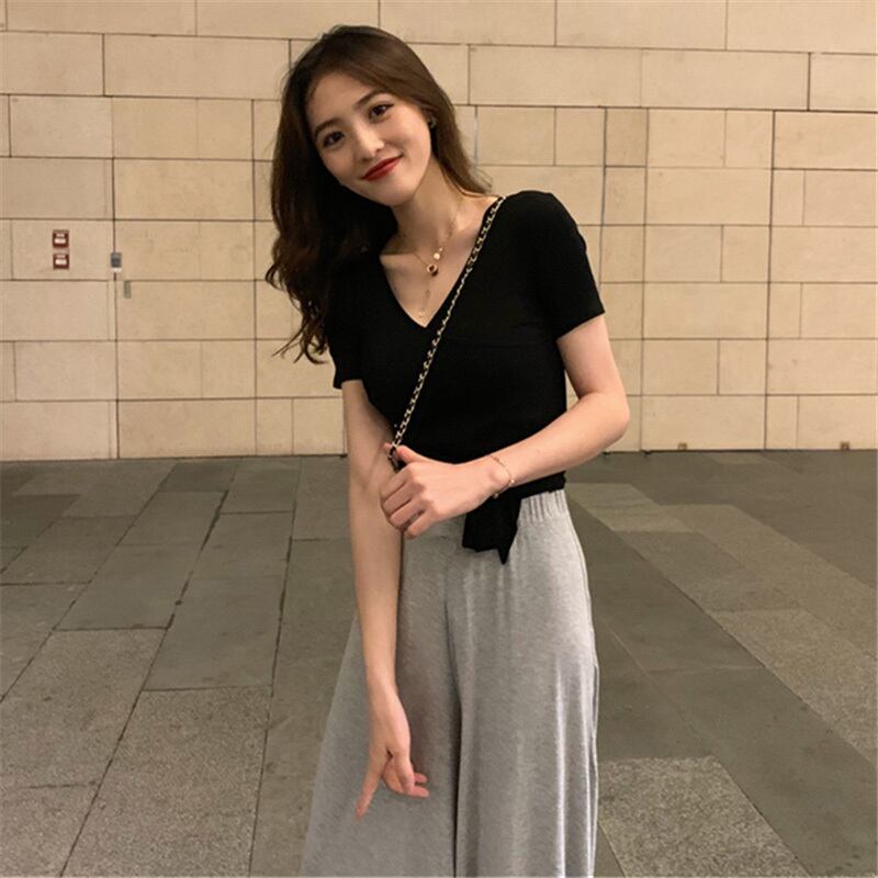 「tops」 Vネック 品の良い 知的 半袖ファッション 無地蝶々結び TシャツGF4163