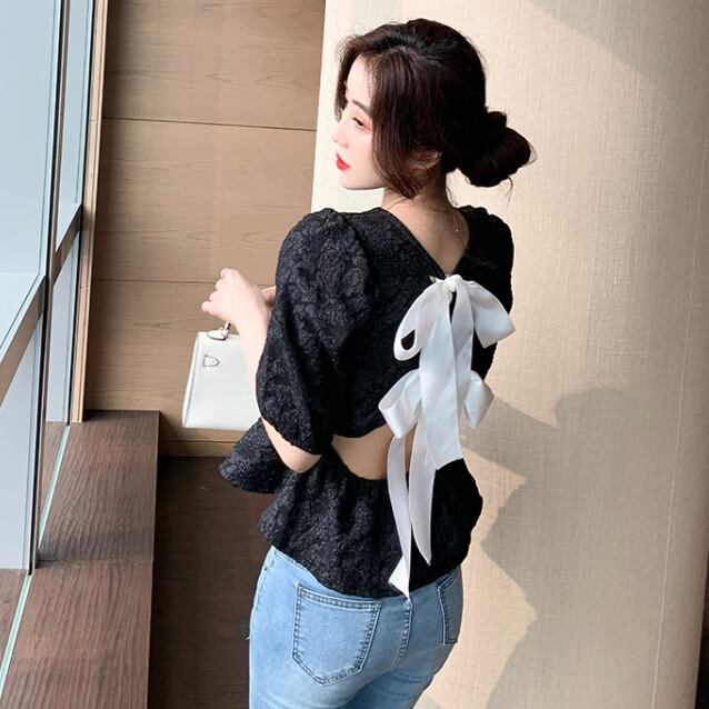「tops」気質溢れるラウンドネック半袖着回し配色ファッションブラウスGF4165