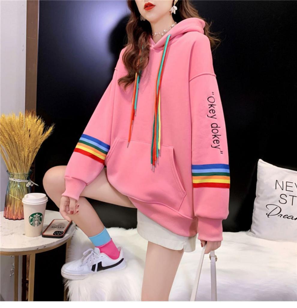 虹色フード付き ゆったりパーカー裏起毛三色トップスGF4216