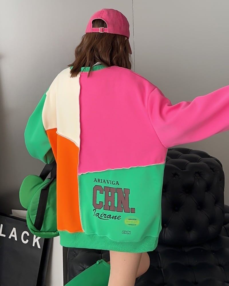 主役級 切り替えロゴ オーバーサイズ スウェット全3色ゆったりトップスGF4363