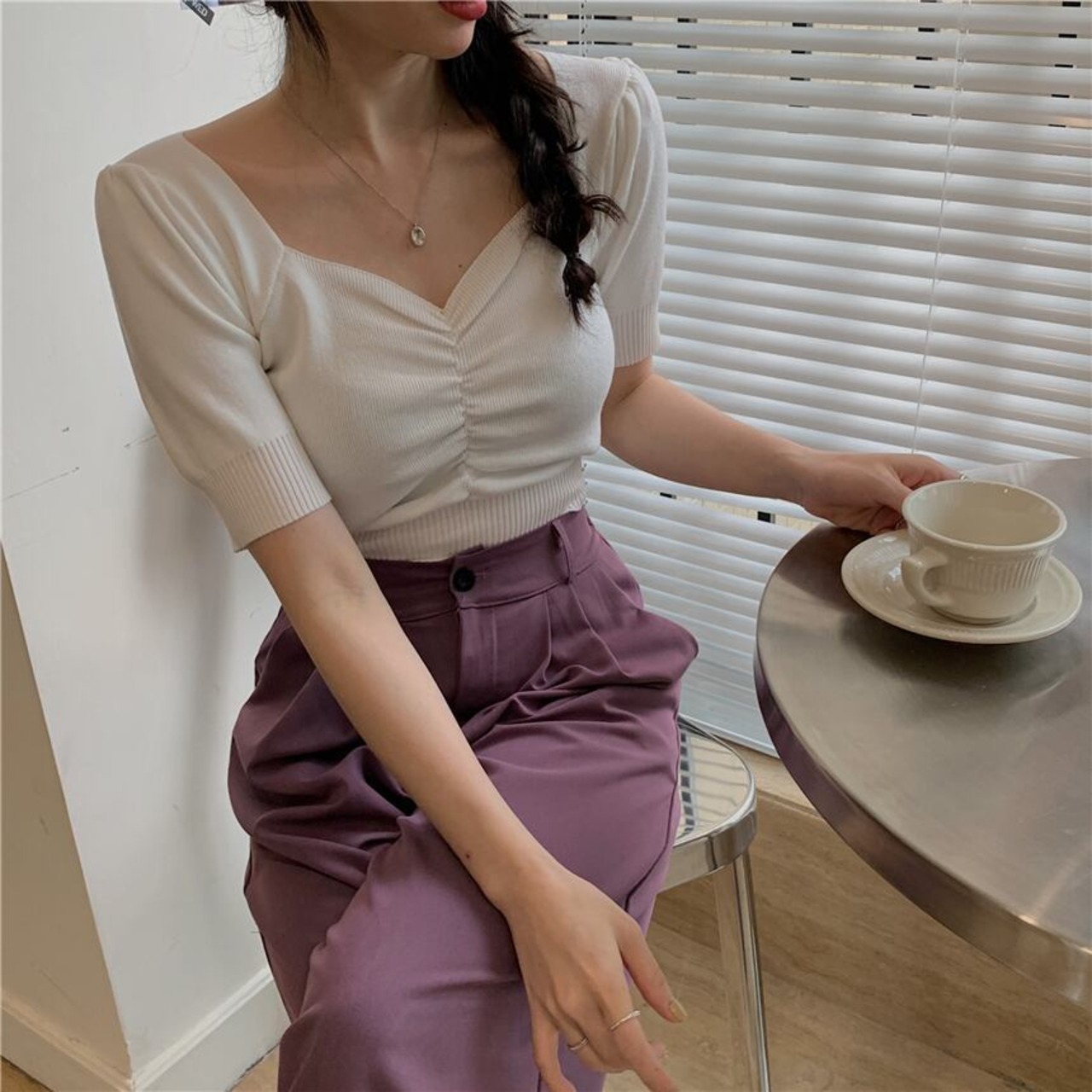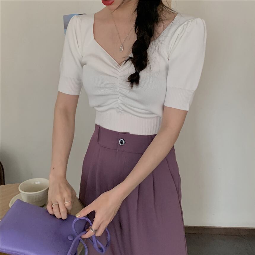 「tops」おすすめ超人気Vネック半袖無地着回し着やせニットTシャツGF4374