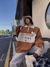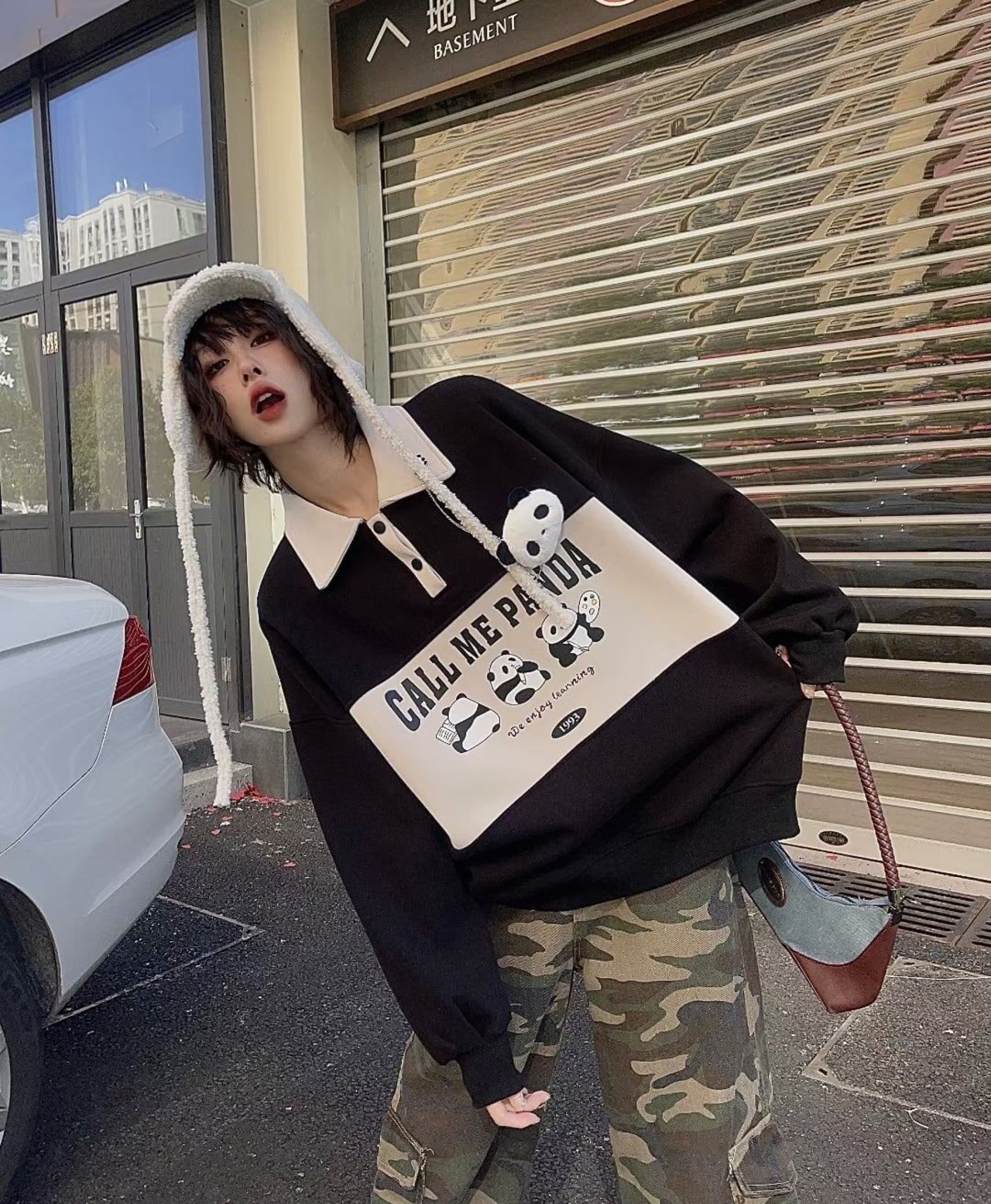 「裏起毛」お勧め ポロネック 可愛いパンダロゴ厚手トップス全4色 GF4384
