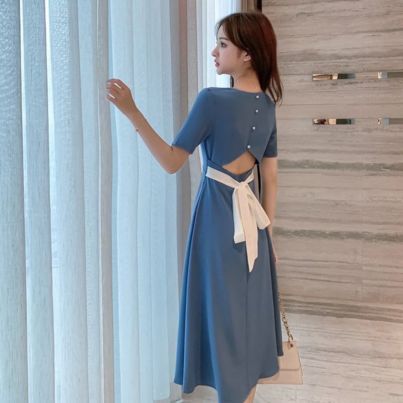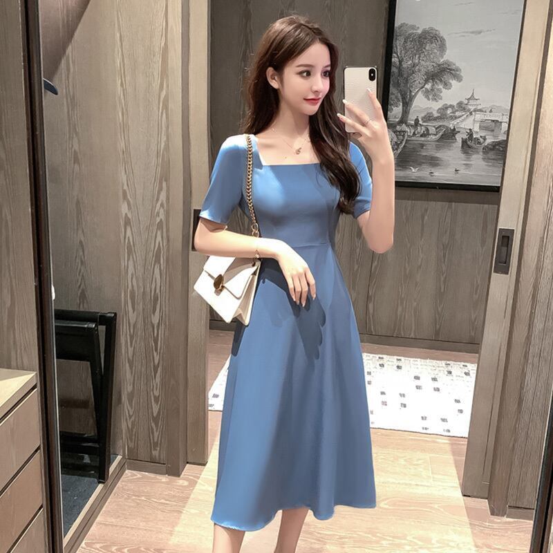 「dress」必ず目を引くスウィートスクエアネック半袖ウエストリボンワンピースGF4417