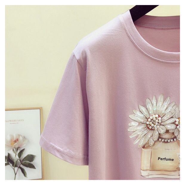 「tops」大人可愛い 夏の新品 菊柄Tシャツ ファッション プリント トップス4色 GF4427