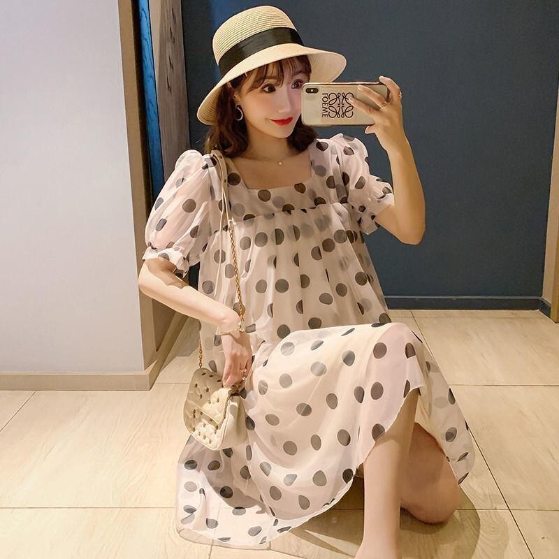 「dress」超人気ドット柄リボン付きルーズワンピース GF4436