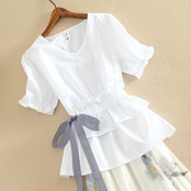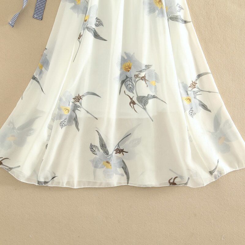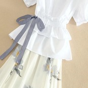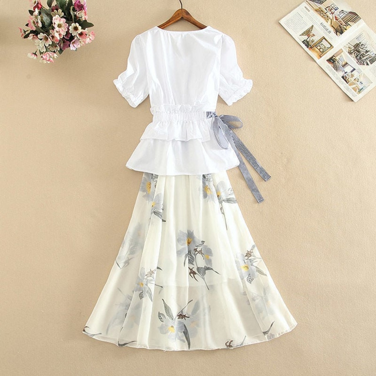 「set」美人度アップVネックウエストリボントップス+花柄スカートセット2色 GF4455