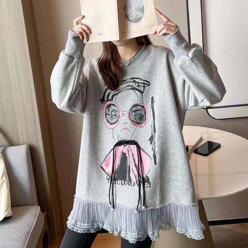 スウィート グラフィックプリント 切り替え オーバーサイズ スウェット三色ありGF4479