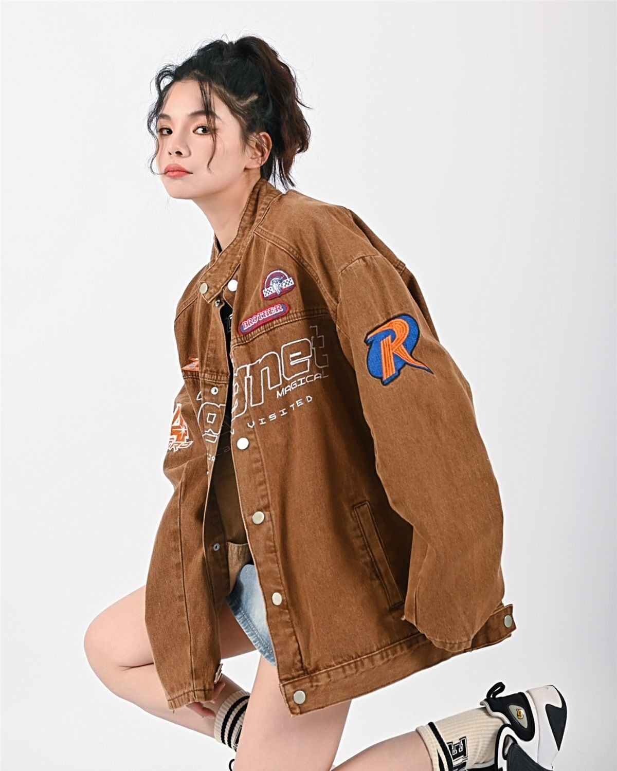 超人気 ヴィンテージ加工 英字ロゴ デニムジャケット 全2色ゆったりコートGF3948