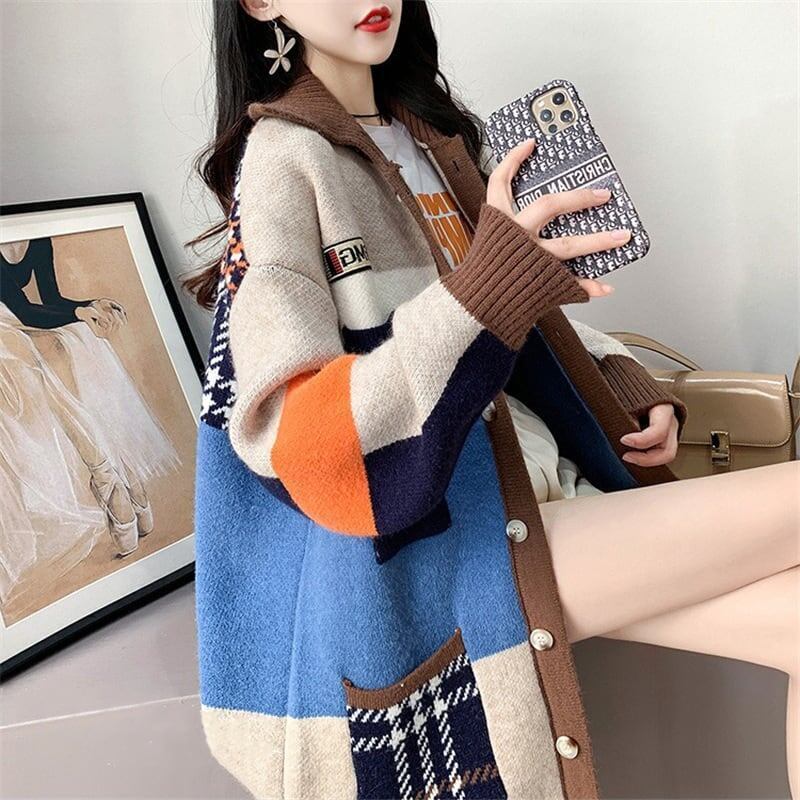 着心地良い 折り襟 大好評 長袖 切り替えカーディガンGF3965