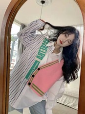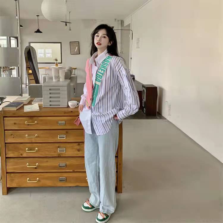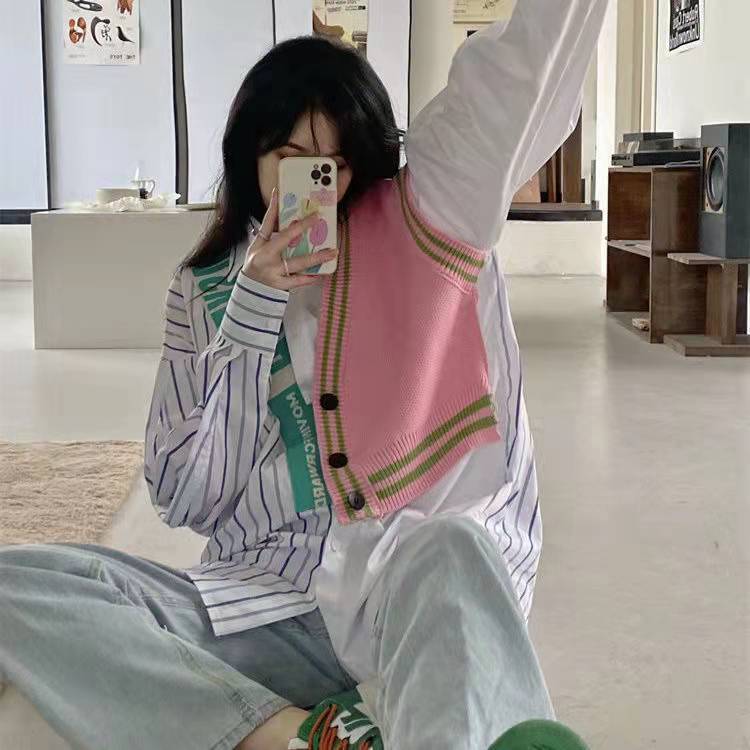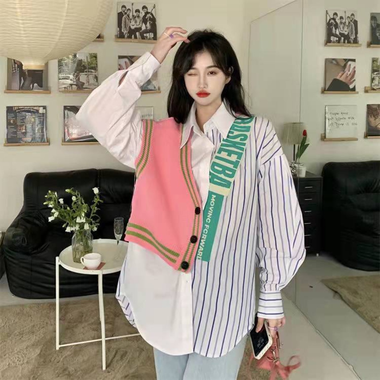 話題沸騰中 ストライプ柄 レイヤード風 切り替え シャツ全2色GF4042