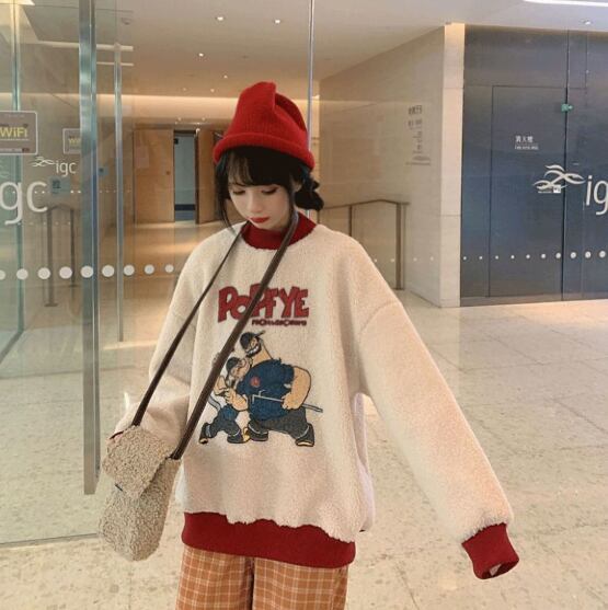 韓国系ふわふわグラフィックロゴボアスウェットトップス全2色GF4075