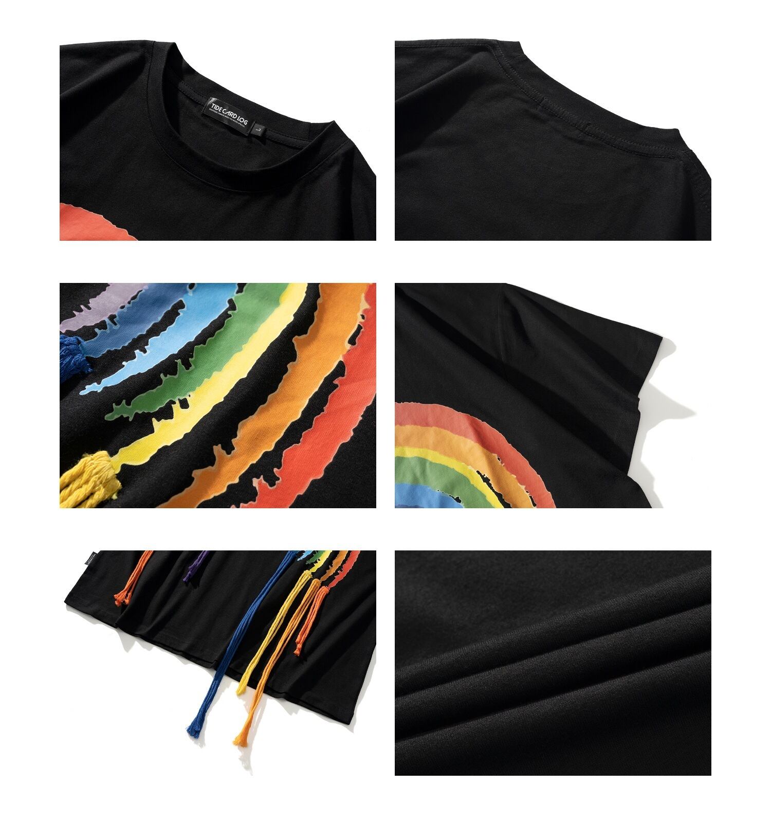好感度UP 虹ロゴ タッセル ゆったり Tシャツ 全2色 ユニセックス半袖GF4086