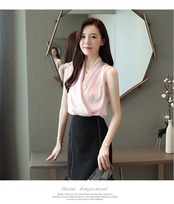 「tops」夏新作選べる5色!Vネックノースリーブ無地着回しタンクトップシフォンGF4118