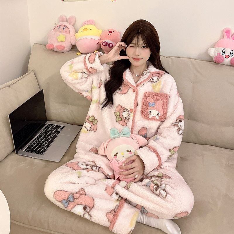「裏起毛」超人気 秋冬服 厚手 防寒 暖かい ガーリッシュ シンプル 漫画プリント 大人可愛い カジュアル ルームウェア 寝間着 パジャマ 2点セット5種類GF9611