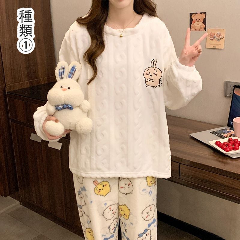 大活躍 秋冬服 裏起毛 厚手 防寒 暖かい 漫画プリント ガーリッシュ 大人可愛い カジュアル ルームウェア 寝間着 パジャマ 2点セット 3種類GF9607